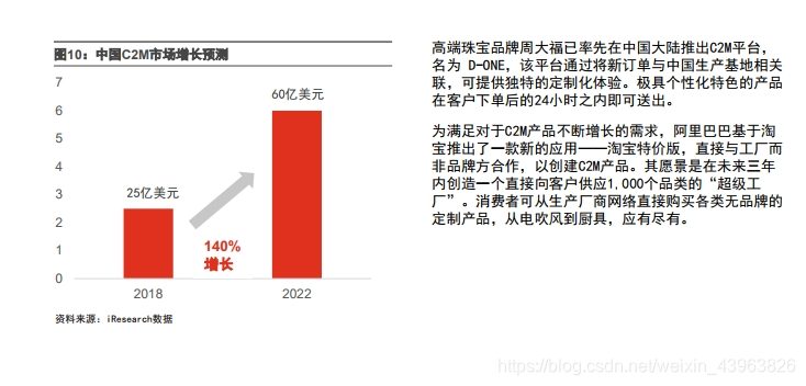 普华永道发布了《2020年全球消费者洞察调研》报告显示:预计到2022年将超过60亿美元。尽管这一相对新的领域只占电商市场的一部分,但C2M可能成为电商里的一股新的驱动力。